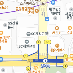 ✔ 장소 검색 방법: 좌측 상단의 "검색창 열기"를 눌러 장소 검색을 할 수 있습니다. (좌표, 주소 검색)